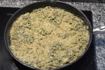Zwiebel fein hacken. 3 EL Butter in der Bratpfanne erhitzen, die Bouillon dazugeben und den Federkohl mit der Zwiebel darin dünsten und mit der Farofa vermischen und kurz weiterdünsten und von Herd nehmen.